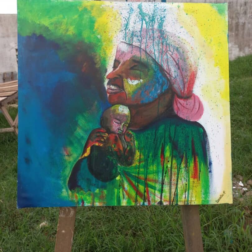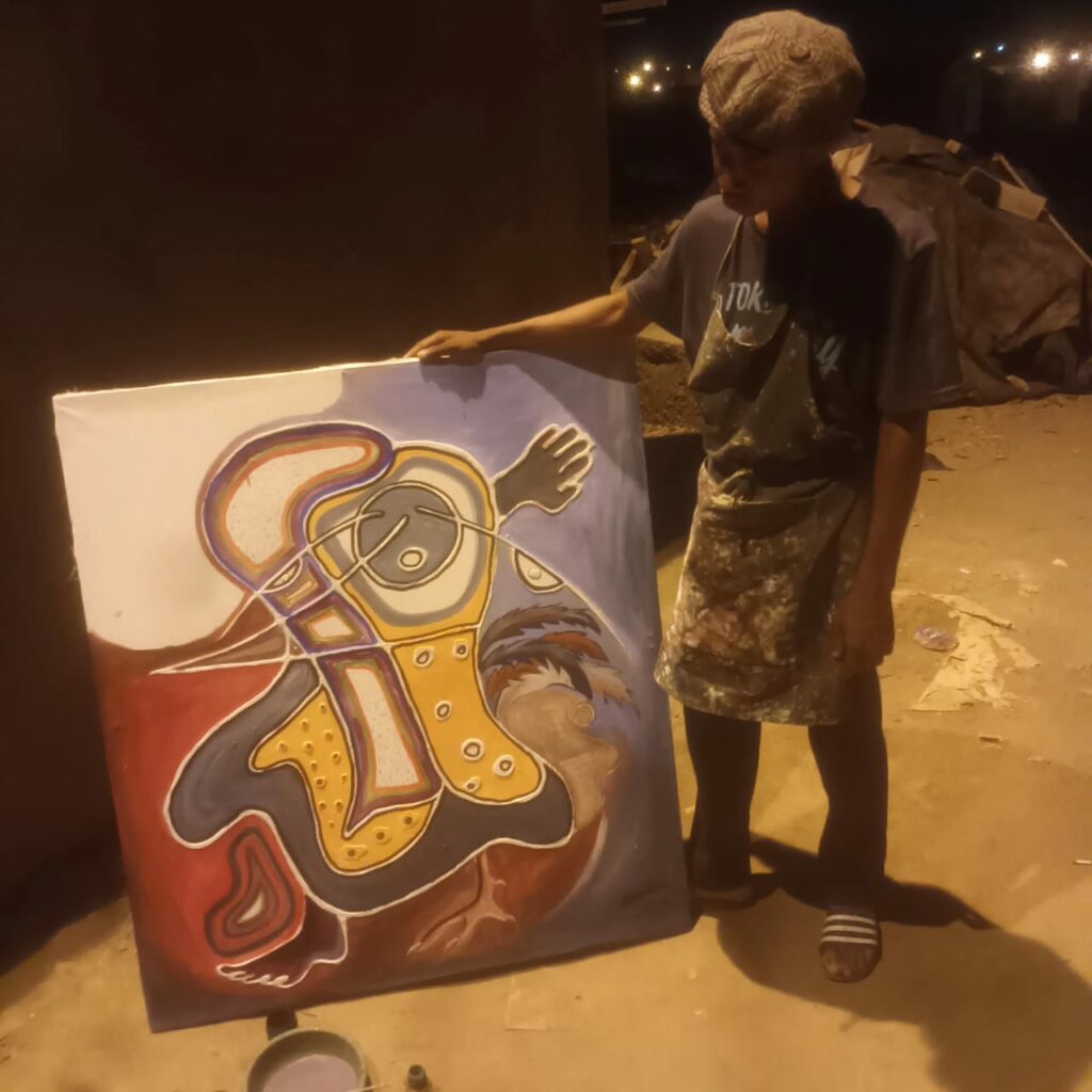 C’est le grand peintre africain d’origine ivoirienne, Jacques Samir Stenka. Il m’a donné de l’espoir, m’a montré et expliqué la valeur de l’art. Certains disent qu’il a signé un pacte avec le diable. Dans la vie, chacun a son destin. Je suis allé chez lui pour regarder ses tableaux. Il m’a demandé de lui montrer mes tableaux. J’ai montré ce que j’avais dans mon téléphone. Il ne croyait pas que j’en étais l’auteur. Lorsqu’il les a vus, il a demandé à les voir en personne. J’ai pris deux de mes tableaux et je suis allé avec ma maman chez lui. Lorsqu’il a vu mes tableaux, il a demandé à ma maman de le laisser me former. Je suis comme un fils pour lui. Il m’a beaucoup appris… Moi qui pensais aimer l’art, j’ai compris que mon amour n’était même pas comparable au sien…
