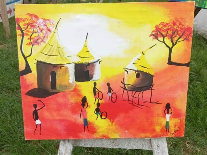 Les week-ends, j’allais dans la grande famille pour regarder les forgerons à la tâche. J’avais soif de quelque chose, mais je ne savais pas que c’était la peinture… Je faisais beaucoup de choses pour essayer de me satisfaire, mais je n’étais pas satisfait. Un jour, j’ai vu des tableaux d’art dans le téléphone de mon papa. Il me les a montrés. J’ai été impressionné, mais j’ai en même temps ressenti un peu de jalousie. Je continuais à dessiner tout ce qui me plaisait. Je motivais également mes amis à fabriquer des choses. Lorsque je suis venu en Côte d’Ivoire, j’ai découvert les tableaux d’art.