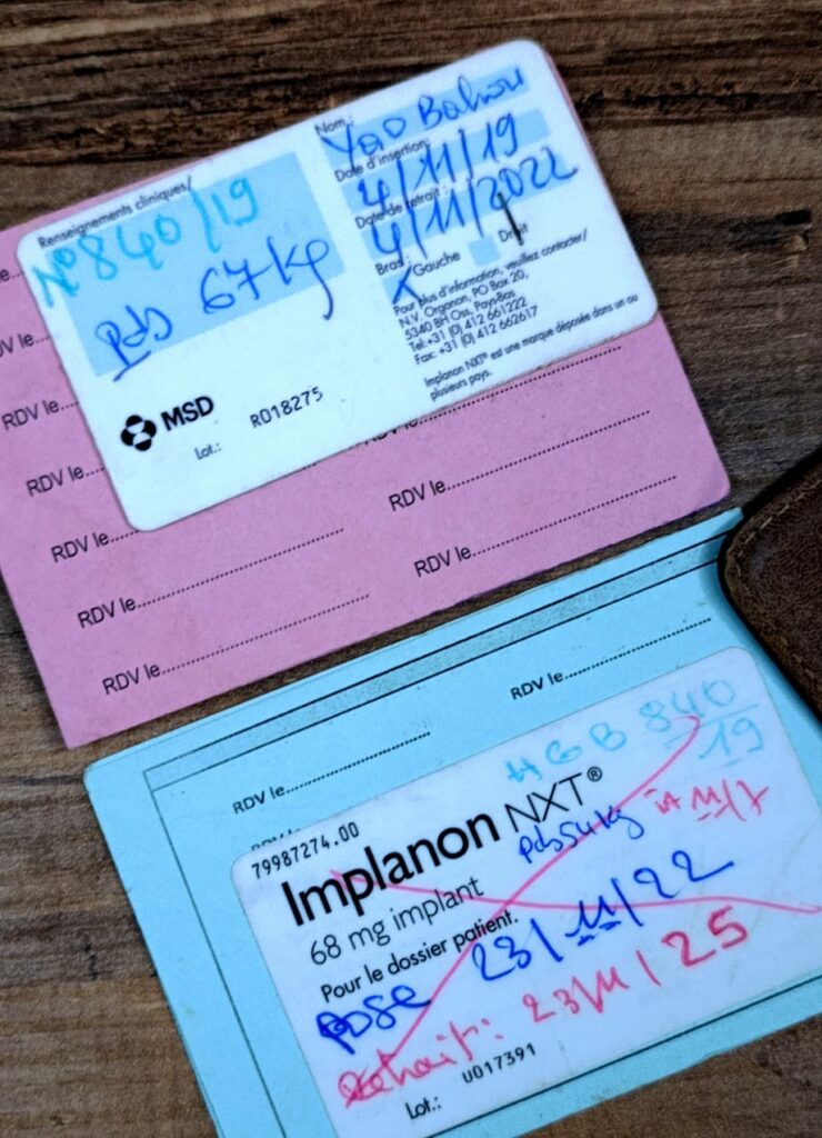 Les différentes méthodes contraceptives m’avaient été présentées, et je me souviens avoir demandé celles qui auraient le moins de conséquences ou d’effets secondaires. Bien que je préfère les injections au supplice de la prise de médicaments sous forme de comprimés lorsque je suis souffrante, il m’était difficile d’opter pour la contraception via les injections. L’intervalle entre les injections me semblait trop court sinon, je ne me faisais pas à l’idée de donner un rendez-vous ponctuel aux seringues. Je n’étais quand même pas malade pour m’infliger ce sort ! Et puis, j’aurais probablement manqué un rendez-vous à l’hôpital ou négligé de m’y rendre. Il n’était pas non plus question d’opter pour les pilules. J’ai une petite aversion pour les cachets et du mal avec la discipline inhérente à la prise de pilules. Le stérilet ? Non. Je préférais clairement, à l’époque, avoir un truc dans le bras plutôt que dans le vagin. J’ai alors opté pour l’implant. J’en voulais un pour une durée de cinq ans, mais les sages-femmes m’ont demandé de reconsidérer mon choix. J’ai fini par écouter leur conseil et opter pour la solution sur trois ans. La pose n’a pas du tout été douloureuse, et j’ai beaucoup apprécié le service des sage-femmes, du petit entretien aux réponses à toutes mes questions concernant la pose de l’implant. C’était à l’Hôpital Général de Bingerville.